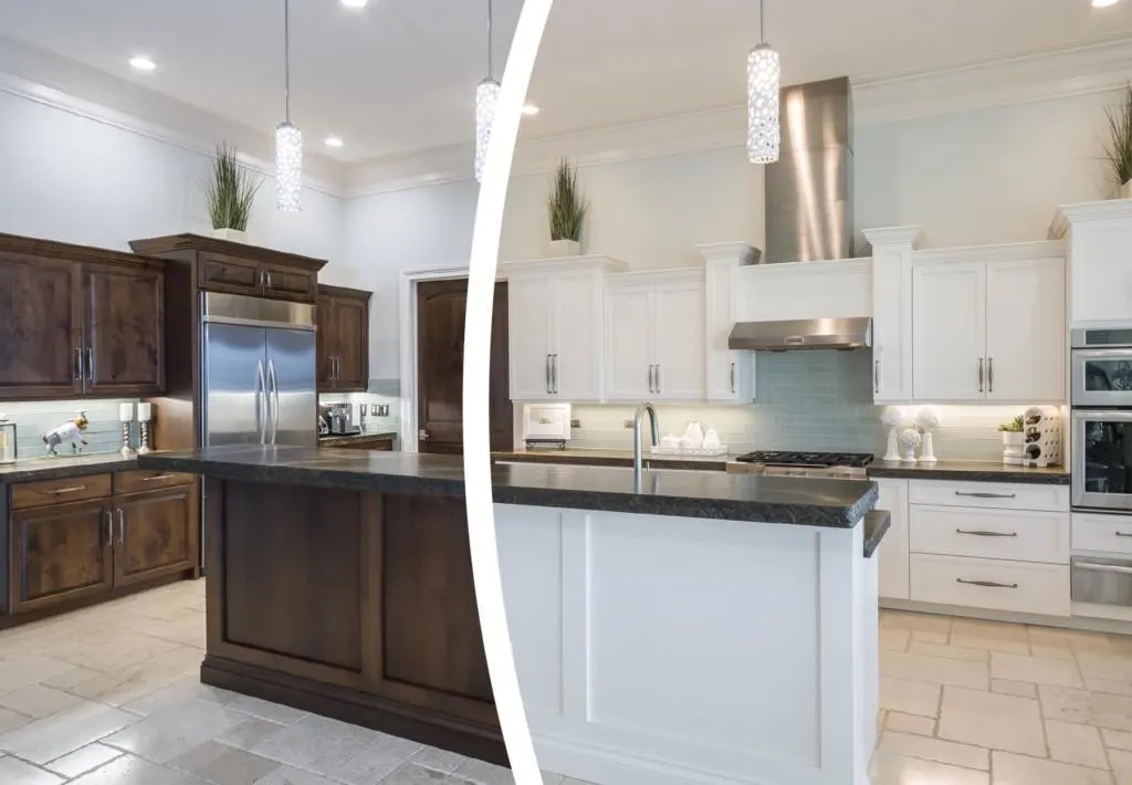Kitchen and bathroom cabinets transformed with a smooth, durable finish for a fresh, modern look.